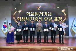[신경북뉴스] 경북교육청은 23일 본청 웅비관에서 학생복지 증진에 이바지한 공로가 큰 개인과 기관을 대상으로 교육감 감사패 전수식을 개최했다고 밝혔다. 이번 전수식은 학교발전기금을 통해 경제적 여건과 관계없이 모든 학생이 공평한 교육 기회를 누릴 수 있도록 장학금과 교육활동 지원에 힘써 온 유공자들의 공로를 기리기 위해 마련됐다. 표창 대상자는 학교발전기금을 지속적으로 출연하며 교육에 대한 남다른 관심과 애정으로 지역 교육 발전에 이바지한 개인 2명과 기관 8곳이다. 이들은 오랜 기간 학생들의 학습 환경 개선과 복지 증진을 위해 꾸준히 기부와 후원을 이어오며, 학교 교육활동 활성화와 교육격차 해소에 크게 이바지해 왔다. 표창을 받은 한 유공자는 “아이들이 행복한 학교를 만들기 위해 함께했을 뿐인데 이렇게 뜻깊은 상을 받게 되어 감사하다”라며, “앞으로도 경북교육의 동반자로서 학생들이 보다 나은 환경에서 꿈을 키울 수 있도록 지속적으로 노력하겠다”라고 소감을 전했다. 임종식 교육감은 “학생복지 증진을 위해 학교발전기금에 적극 동참해 주신 유공자 여러분께 깊이 감사드린다”라며, “여러분의