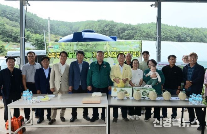 [신경북뉴스] 봉화군은 지난 24일 재산면의 멜론 재배농가에서 ‘수박 후작 고품질 멜론재배 기반조성 시범사업 평가회’를 개최하고, 멜론 본격 출하 소식을 알렸다.
