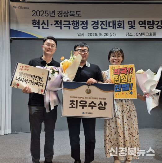 [신경북뉴스] 구미시는 지난 26일 열린 ‘2025년 경상북도 혁신 및 적극행정 우수사례 경진대회’에서 ‘기초지방자치단체 최초, 산재근로자 공공재활 의료기관 유치’사례로 최우수상을 수상했다. 이번 수상의 주인공은 보건의료정책과 박진범 주무관으로 해당 사례는 2025년도 구미시 적극행정 우수사례에도 선정된 바 있다.