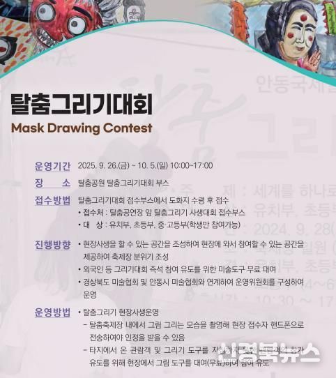 [신경북뉴스] 2025 안동국제탈춤페스티벌에서는 축제 기간 동안 세계탈춤그리기대회가 운영된다.