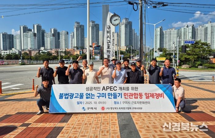 [신경북뉴스] 구미시는 민족 대명절 추석과 오는 10월 말 경주에서 열리는 2025 APEC 정상회의를 앞두고 (사)경북옥외광고협회 구미시지부와 함께 10월 한 달간 불법광고물 집중정비 기간을 운영한다.
