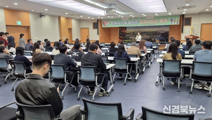 [신경북뉴스] 안동시는 10월 14일 웅부관 청백실에서 안동시 공무원 200여 명을 대상으로 민원응대 역량을 강화하고 원활한 민원서비스를 제공하기 위한 친절 교육을 실시했다.