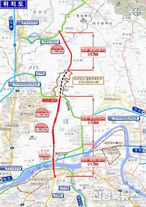 [신경북뉴스] 대구광역시는 조야동과 도남지구를 연결하는 ‘조야~동명 광역도로 건설사업’의 3공구 계약을 완료하고, 11월 중 전 구간 착공에 들어간다.