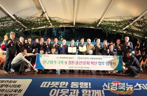 [신경북뉴스] 대구 달서구는 지난 31일 대구광역시 자율방범연합회와 초저출생 인구위기 극복을 위해 공동 대응하고,‘잘 만나보세’뉴(NEW) 새마을운동(결혼문화) 확산 등을 위한 업무 협약을 체결했다.