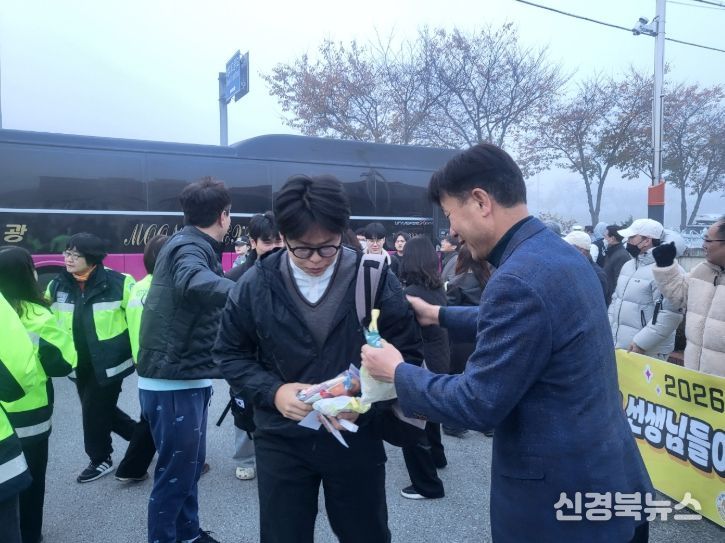 [신경북뉴스] 경상북도의성교육지원청은 11월 13일 07시 00분부터 의성 지역 유일한 수능 시험장학교인 의성여자고등학교 정문에서 관계자 및 직원 20여 명이 함께 수험생 대상으로 수능 응원을 했다.