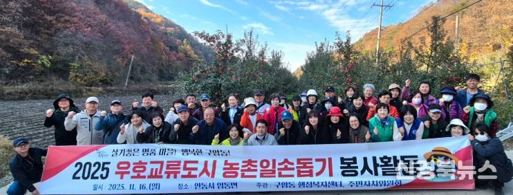 구암동은 농촌일손돕기 봉사활동 외에도 농특산품 직거래장터 등 다양한 교류사업을 통해 임동면과의 협력을 지속적으로 확대하고 있으며, 이번 활동은 두 도시 간 상호 협력과 교류를 더욱 강화하는 계기가 될 것으로 기대된다.