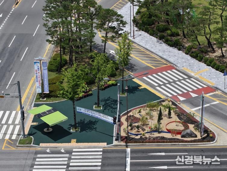 안동시는 6월 영호대교 북단 교통섬에 안동무궁화, 목수국, 무늬억새 등으로 정원을 조성해 기존 노후 꽃탑을 대체하고 운전자 시야 확보까지 고려한 정비를 완료했다.