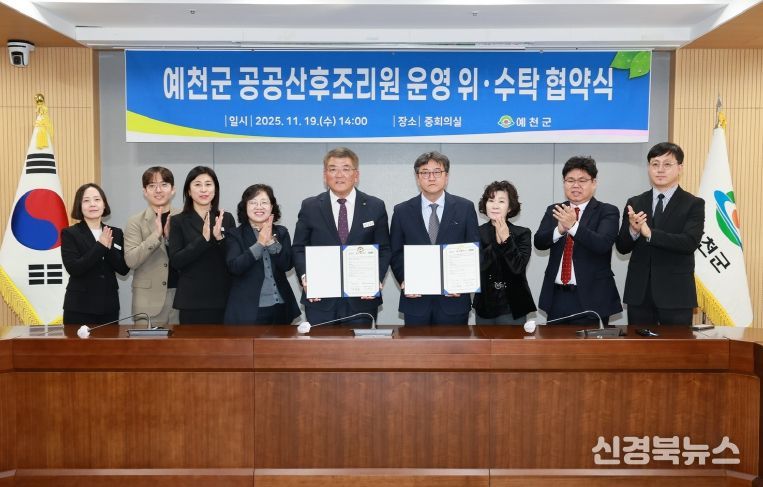 [신경북뉴스] 예천군은 19일 오후 2시, 군청 중회의실에서 예천권병원(병원장 권규호)과 예천군 공공산후조리원 운영 위‧수탁 협약을 체결하고 안정적이고 전문적인 산후 돌봄 서비스 제공을 위한 상호 협력을 약속했다.