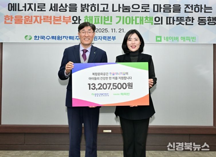 [신경북뉴스] 한국수력원자력(주) 한울원자력본부는 11월 21일 한울 다누림 문화 행사를 통해 모금한 1,320만 원의 기부금을 전달하는 행사를 가졌다.
