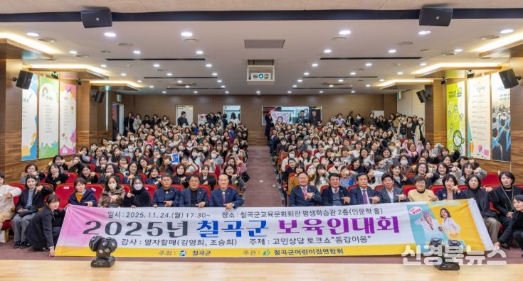 [신경북뉴스] 칠곡군어린이집연합회(회장 박우영)는 지난 24일 칠곡군교육문화회관 인문학홀에서 관내 어린이집 원장과 보육교사 등 보육교직원 250여 명이 참석한 가운데 ‘2025년 칠곡군 보육인 대회’를 성대하게 개최했다.