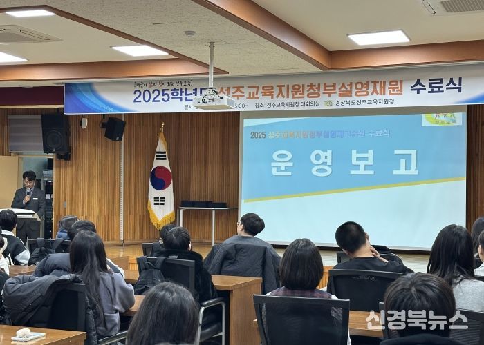 [신경북뉴스] 경상북도성주교육지원청은 11월 25일 15시 30분에 성주교육지원청 대회의실에서 2025학년도 교육과정을 성공적으로 마무리한 초등수학반, 초등융합반, 중등융합반 영재학생 32명의 수료식을 성주교육지원청 대회의실에서 개최했다.