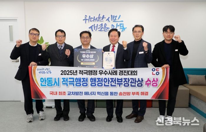 [신경북뉴스] 안동시는 11월 27일 열린 ‘2025년 적극행정 우수사례 경진대회’에서 '국내 최초 교차발전 에너지 혁신' 사례로 행정안전부장관상을 수상했다.