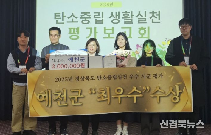 [신경북뉴스] 예천군은 19일 구미 호텔금오산에서 열린 ‘2025년 탄소중립실천 우수시군 평가보고회’에서 ‘최우수상’을 수상했다.