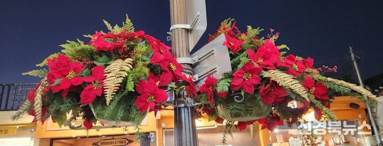 관광객 방문이 집중되는 황리단길 일원에는 가로등에 포인세티아 화분 56개를 설치해 연말연시와 겨울철 관광 성수기에 어울리는 따뜻한 분위기를 연출했다.
