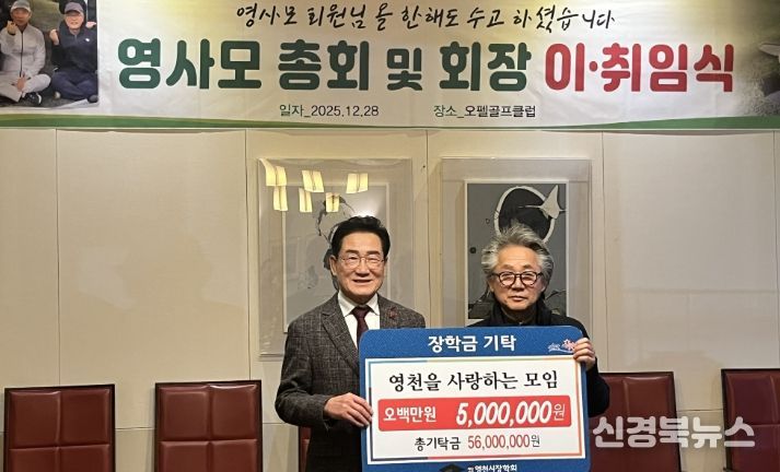 [신경북뉴스] 영천시는 지난 28일 영사모(영천을 사랑하는 모임)가 500만원, 29일에는 신녕농업협동조합 500만원, 신녕면 이장협의회 102만원의 장학금을 영천시장학회에 기탁했다고 밝혔다.