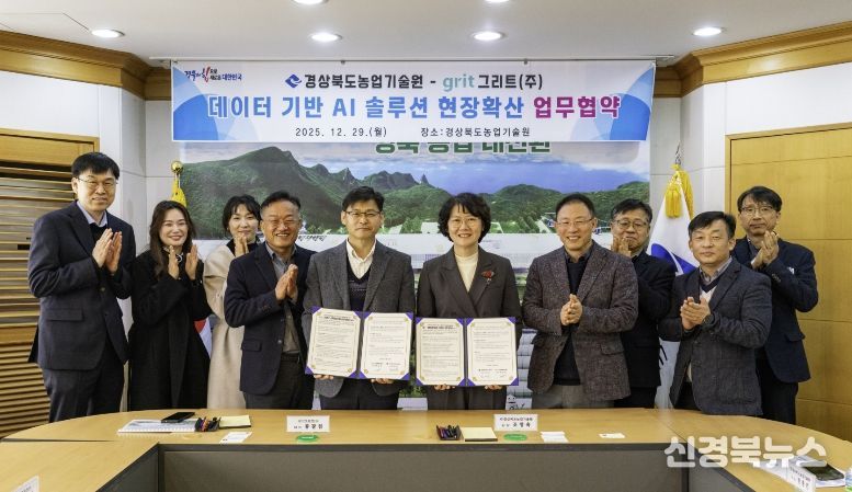 두 기관은 29일 경상북도농업기술원에서 ‘스마트농업 데이터 기반 AI 솔루션 현장 확산을 위한 업무협약(MOU)’을 체결했다.