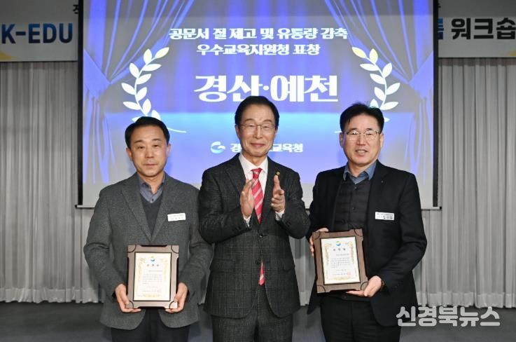 [신경북뉴스] 경북교육청은 2025년 학교로 발송하는 공문서의 유통량 감축과 질적 개선에 이바지한 우수교육지원청으로 경산교육지원청과 예천교육지원청을 선정하고 교육감 표창을 수여했다고 30일 밝혔다.