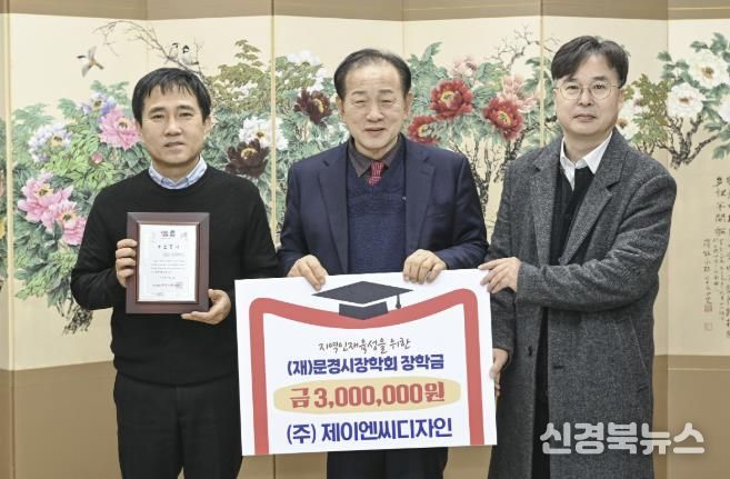 [신경북뉴스] (재)문경시장학회는 2일 ㈜제이엔씨디자인이 지역인재 육성을 위해 300만 원의 장학금을 문경시장학회에 기탁했다고 밝혔다.