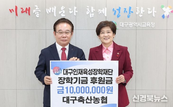 [신경북뉴스] 대구시교육청은 1월 16일, 대구축산농협(조합장 최성문)에서 대구인재육성장학재단에 장학금 1천만 원을 기탁한다고 밝혔다.