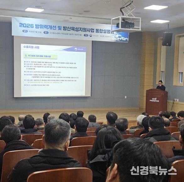 시는 지난 29일 구미 금오테크노밸리 IT의료융합기술센터 1층 대강당에서 '2026년 방위력개선 및 방산육성지원사업 통합설명회'가 개최됐다고 밝혔다.