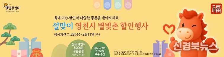 [신경북뉴스] 영천시는 지역 농특산물 온라인 쇼핑몰 ‘별빛촌장터’에서 병오년 설을 맞아 2월 11일까지 특별 할인행사를 진행한다고 밝혔다.