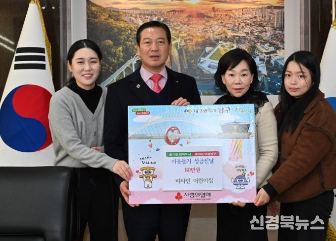 [신경북뉴스] 대구 남구 국공립 비타민어린이집에서는 지난 1월 29일 남구청을 방문하여 이웃돕기 성금 80만원을 기탁했다.