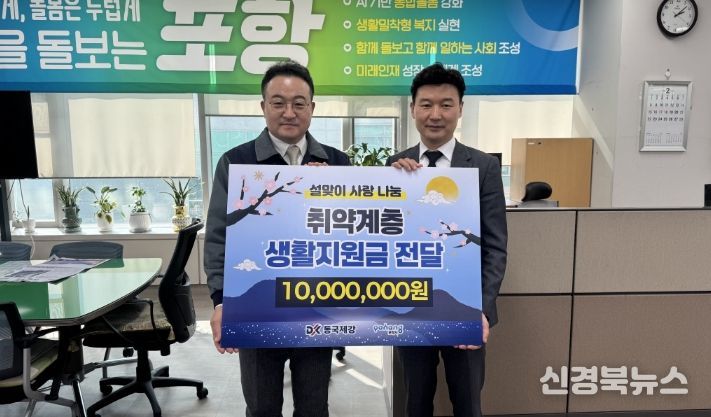 [신경북뉴스] 포항시는 2일 동국제강이 설 명절을 맞아 지역 소외계층을 지원하기 위해 포항사랑상품권 1,000매(1,000만 원 상당)를 기탁했다고 밝혔다.