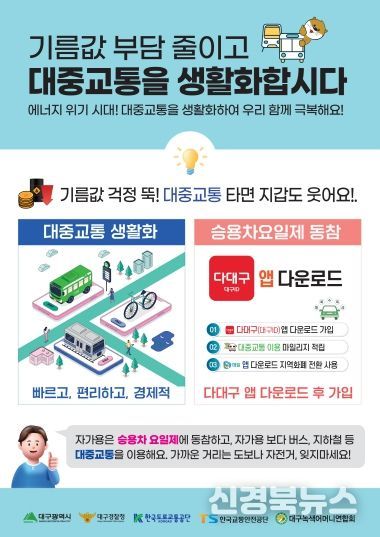 [신경북뉴스] 대구광역시는 중동 지역 에너지 위기 상황에 대응해 대중교통 이용을 장려하는 시민 캠페인을 추진한다.