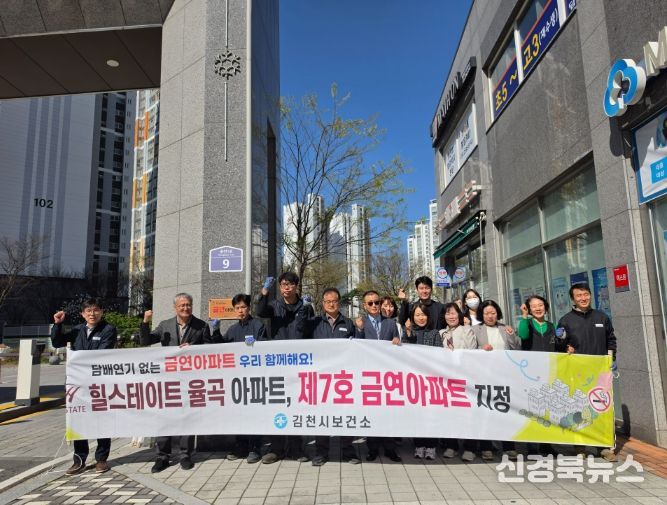 [신경북뉴스] 김천시보건소는 공동주택 내 간접흡연 피해를 예방하고 건강한 주거 문화를 정착시키기 위해 4월 8일, 힐스테이트 율곡 아파트에서 ‘제7호 금연아파트’ 지정 현판식을 개최했다.