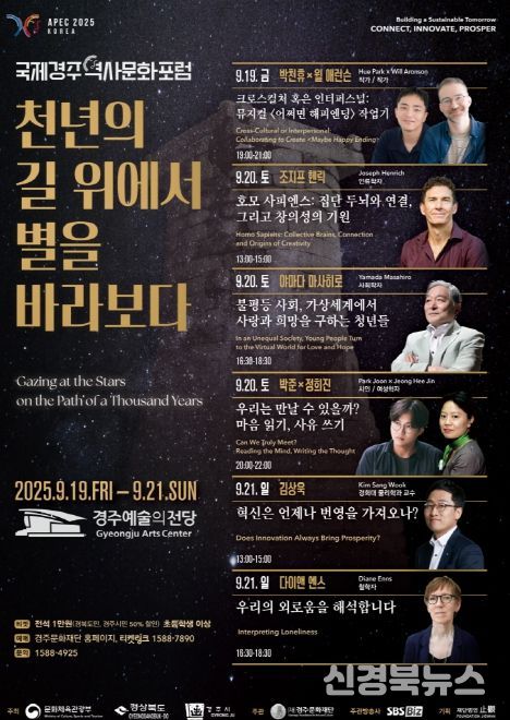 [신경북뉴스] 경상북도는 2025년 APEC 정상회의를 앞두고 19일부터 21일까지 3일간 경주예술의전당에서 ‘2025 국제경주역사문화포럼’을 개최한다.
