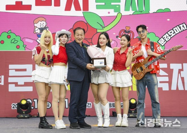 [신경북뉴스] 문경시는 지난 21일, 제21회 문경오미자축제 폐막식 현장에서 혼성그룹 앵두걸스 려화와 가수 한혜정을 문경시 홍보대사로 위촉했다.