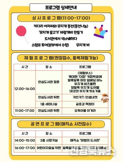 도서관사업부 관계자는 “지역의 자연과 함께하는 안심도서관에서, 책을 중심으로 웃음과 감동, 추억이 가득한 하루를 보내시길 바란다”며, “이번 축제가 주민 여러분의 일상에 작은 쉼표가 되고, 우리 동구의 문화적 자긍심을 높이는 따뜻한 계기가 되기를 기대한다”고 덧붙였다.