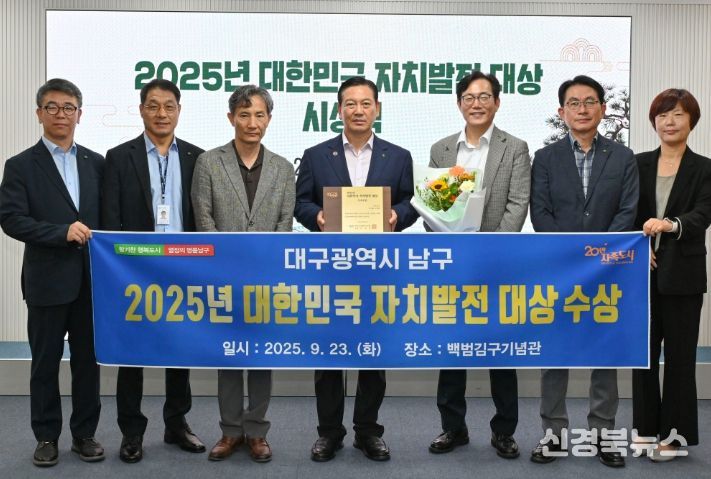 [신경북뉴스] 대구 남구는 지난 23일 서울 용산구 백범김구기념관 컨벤션홀에서 열린 '2025 대한민국 자치발전 대상'에서 기초부문 대상을 수상했다.