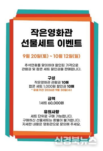 [신경북뉴스] 성주별고을시네마(창의문화센터 3층)는 민족 대명절 추석을 맞아 9월 20일부터 10월 12일까지 ‘추석맞이 선물세트 이벤트’를 진행한다.