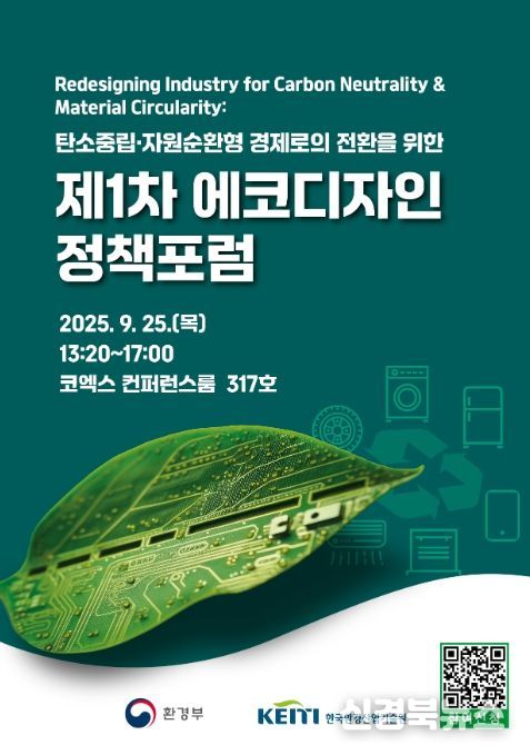 [신경북뉴스] 환경부와 한국환경산업기술원은 9월 25일 코엑스(서울 강남구 소재)에서 ‘제1차 에코디자인 정책포럼’을 개최한다.