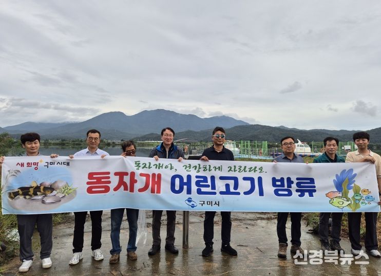 [신경북뉴스] 구미시는 지난 25일 선산읍 독동리 낙동강 구미보 상류 환경감시선 선착장에서 낙동강 어업인 등이 참여한 가운데 동자개 치어 5만3천 미를 방류했다.