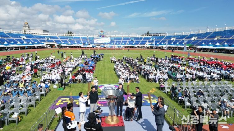 [신경북뉴스] 포항시가 지난 27일 포항종합운동장에서 시민 1만여 명이 참여한 가운데 제15회 포항시민체육대회를 열고, 지역 화합과 통합 30년의 성과를 기념하는 대규모 축제를 개최했다.