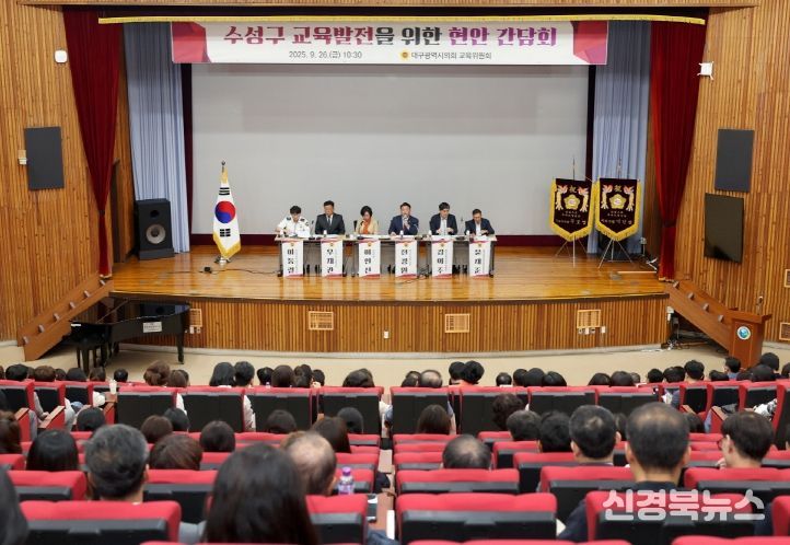 [신경북뉴스] 대구광역시의회 교육위원회는 지난 9월 26일, 대구창의융합교육원에서 수성구 지역 77개교 교장, 운영위원, 학부모 등과 함께 학교별 교육 현안 해결 및 정책 실현 방안 논의를 위한 간담회를 개최했다.