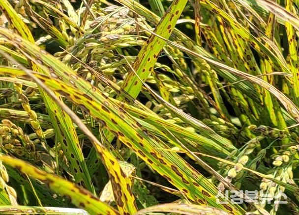 [신경북뉴스] 상주시농업기술센터는 9월 23일부터 9월 29일까지 수확기를 앞둔 벼의 깨씨무늬병 피해를 막기 위해 긴급 방제 약제 공급에 나섰다고 밝혔다. 올해 7월부터 시작된 폭염의 영향으로 작물체의 호흡량이 증가함에 따라 토양 내 양분 소모가 급격히 일어나 깨씨무늬병 피해의 원인이 됐다.