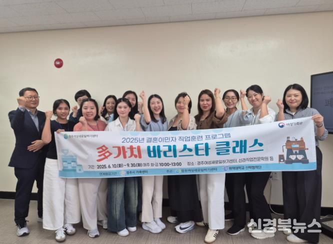 [신경북뉴스] 경주시는 경주여성새로일하기센터가 지난달 30일 오전 센터 4층에서 결혼이민여성 직업훈련 프로그램인 ‘多가치 바리스타 클래스’ 수료식을 열었다고 1일 밝혔다.