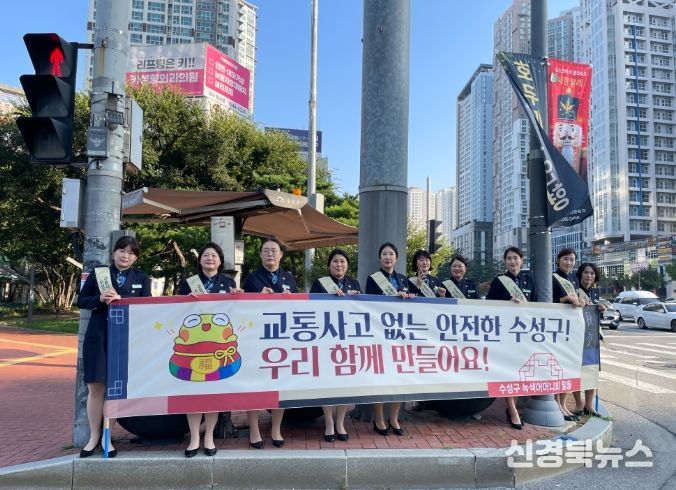 캠페인에는 교통 관련 봉사단체인 보행지킴이, 모범운전자회, 녹색어머니회 회원을 비롯해 수성경찰서와 수성구청 교통과, 정책추진단 직원 등 총 60여 명이 참여했다.