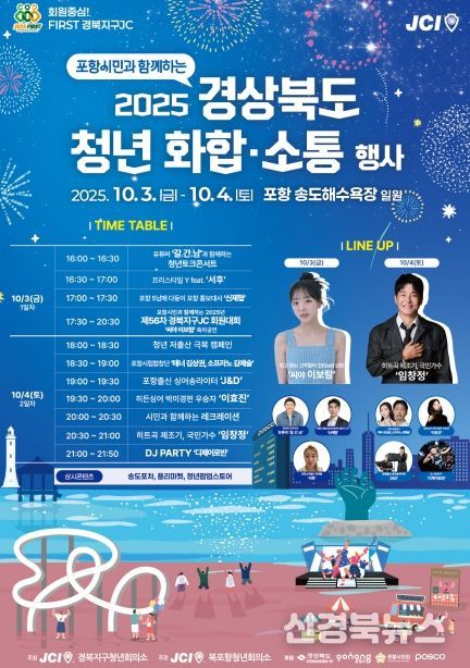 [신경북뉴스] 포항시는 경상북도 청년들의 화합과 소통을 위한 ‘경북 청년대축제’가 오는 3일부터 4일까지 양일간 포항 송도해수욕장에서 펼쳐진다고 전했다.