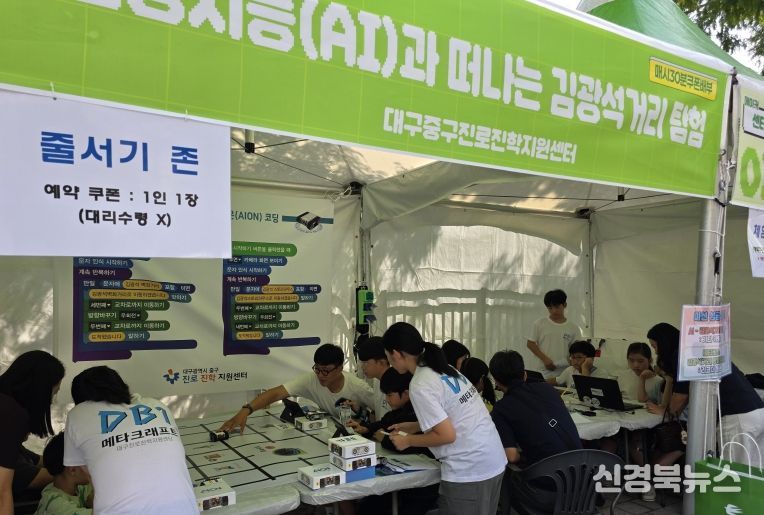 [신경북뉴스] 대구 중구진로진학지원센터(센터장 김남탁)는 대봉1동 창의융합 학생동아리와 함께 지난달 27일부터 이틀간 삼성창조캠퍼스에서 열린 ‘2025 대구메이커페스타’에 참가해 김광석거리 홍보 프로젝트 ‘DB1 메타크래프트 체험부스’를 운영했다.