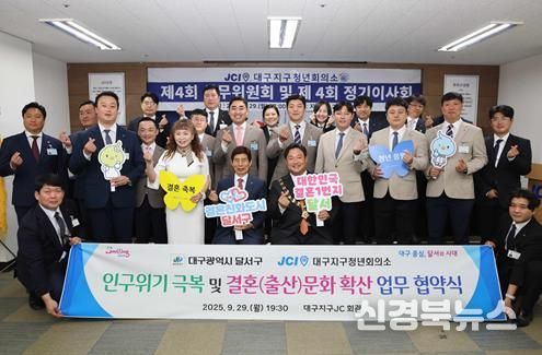 [신경북뉴스] 대구 달서구는 지난 29일 대구지구청년회의소(회장 이성범)와 초저출생 인구 위기 극복 및 긍정적 결혼문화 확산을 위한 업무협약을 체결했다.