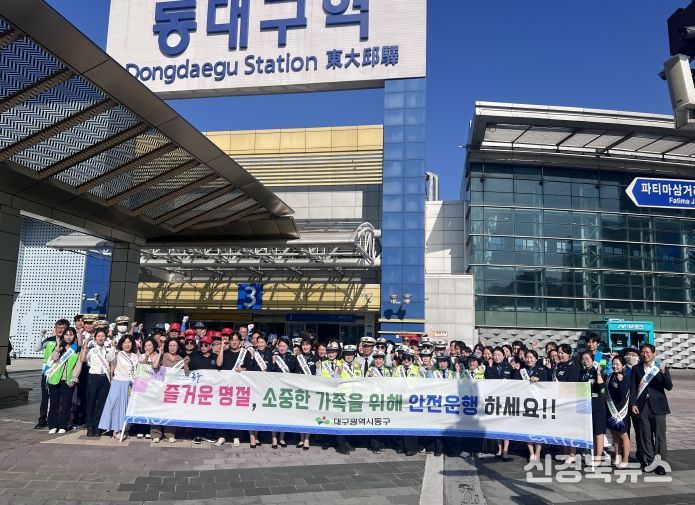 [신경북뉴스] 대구 동구청은 지난 1일, 동대구역 광장 일원에서 민족고유의 명절인 추석을 맞아 안전하고 편안한 귀성길을 위한 ‘추석맞이 교통안전 캠페인’을 실시했다.