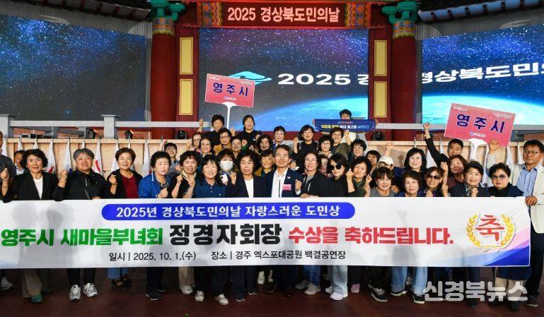 [신경북뉴스] 영주시는 10월 1일 경주 엑스포대공원 백결공연장에서 열린 ‘2025년 도민의 날 기념식’에서 정경자 영주시 새마을부녀회장이 ‘영주시 자랑스러운 도민상’을 수상했다고 밝혔다.
