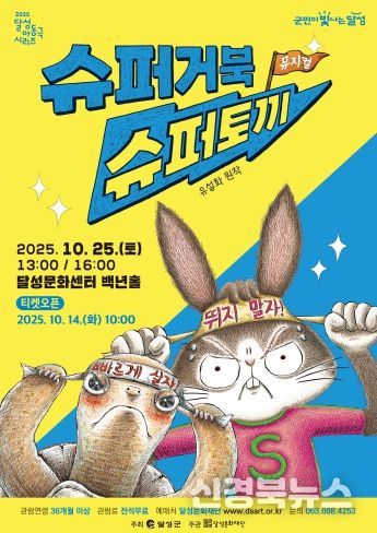 [신경북뉴스] 달성문화재단은 오는 25일 오후 1시와 4시, 달성문화센터 백년홀에서 ‘2025 달성 아동극 시리즈’의 다섯 번째 공연 ‘슈퍼거북 슈퍼토끼’를 개최한다고 밝혔다.