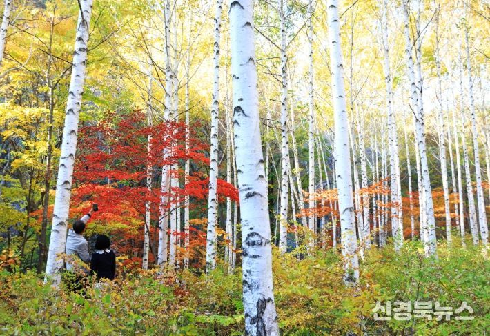 빼곡하게 수놓인 나무의 하얀 수피들 사이로 알록달록 피어오른 단풍은 늘상 봐오던 단풍나무들과는 색다른 감동을 선사할 것이다.