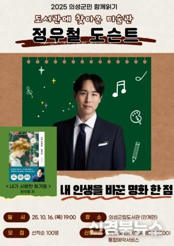 [신경북뉴스] 의성군은 오는 10월 16일 의성군립도서관에서 정우철 도슨트를 초청해 '내 인생을 바꾼 명화 한 점'을 주제로 저자강연을 개최한다고 밝혔다.