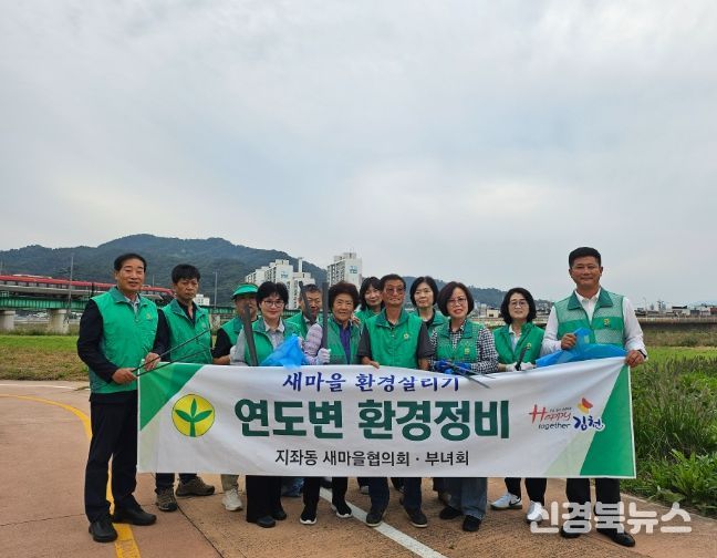 [신경북뉴스] 김천시 지좌동 새마을지도자회(협의회장 박주태, 부녀회장 황경숙)는 지난 10월 2일, 민족 최대의 명절 추석을 앞두고 고향을 찾는 귀성객과 지역 주민들에게 쾌적하고 깨끗한 환경을 제공하기 위해 관내 감천변 일대에서 대대적인 환경정화 활동을 펼쳤다.